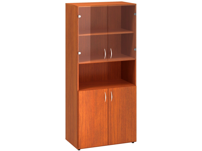 Pevnost a stabilita jsou zaručeny kvalitním technickým řešením. Dřevěné police jsou upevněny pomocí kovových trnů, zamezujících jejich nežádoucímu vysunutí. U výškového modulu 5M je jedna z polic pevná. Důležitou vlastností dřevěných skříní je rektifikace 15 mm pro vyrovnání nerovnosti podlahy. V nabídce jsou kancelářské skříně se skleněnými křídlovými dveřmi o tloušťce 6 mm, skříně s LTD křídlovými dveřmi (tl. 18 mm) s ABS hranou, s úchytkami a nacvakávacími závěsy dveří. Rozevření dveřních křídel až do úhlu 110 °. Rovněž nabízíme i skříně se žaluziovými dveřmi nebo standardní otevřené skříně a rohové niky. Součástí řady 500 jsou také praktické kontejnery, do kterých uložíte vše, co je třeba.