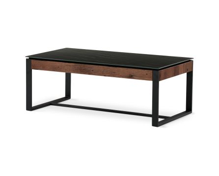 Stůl konferenční, deska slinutá keramika 120x60, černý mramor, nohy černý kov, tmavě hnedá dýha