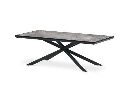 Stůl konferenční, deska slinutá keramika 120x60, šedý mramor, nohy černý kov