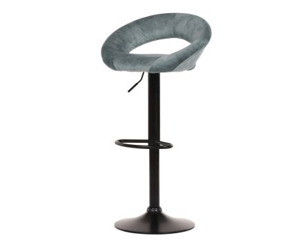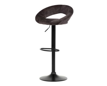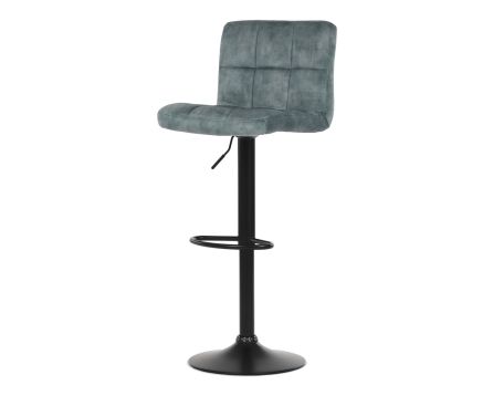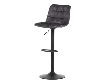 Židle barová, šedá látka v imitaci broušené kůže, černá podnož, výškově stavitelná