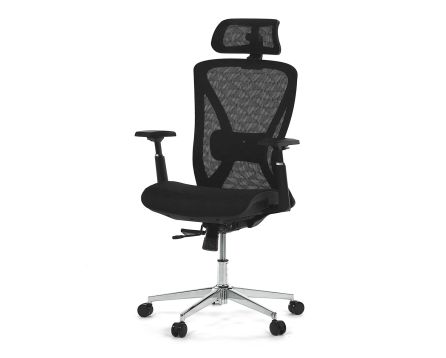 Židle kancelářská, černý mesh, černý plast, nastavitelný podhlavník, bederní opěrka