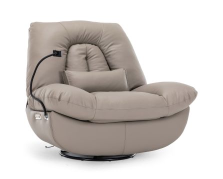 TV křeslo s elektrickým polohováním, zabudované ovládání, USB-A, šedá ekokůže