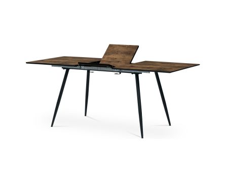 Jídelní stůl, 140+40x80x76 cm, MDF deska, 3D dekor v imitaci staré dřevo, kov, černý lak