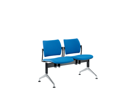 plastové kluzáky, dvojmístná lavice, ocelová podnož v povrchové úpravě černá prášková barva, hliníkové nohy leštěné, plastový, nebo čalouněný sedák a opěrák, plastový kryt sedáku a opěráku, černý, spojovací profil sedáku a opěráku černá prášková barva