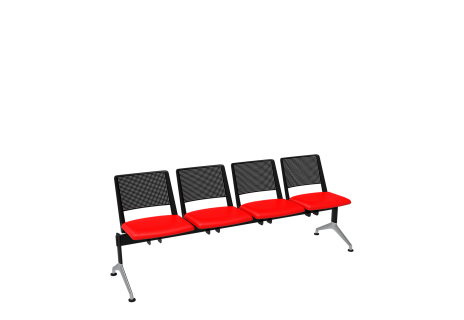 plastové kluzáky, opěrák perforovaný, čtyřmístná lavice, plastový, nebo čalouněný sedák, opěrák plastový, ocelová podnož v povrchové úpravě černá prášková barva, hliníkové nohy leštěné