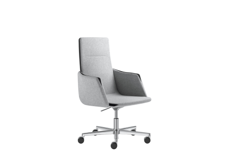 kolečka na koberce, černá, Ø 60 mm, celočalouněný korpus, výškově stavitelné, 5-ramenný hliníkový kříž, leštěný, otočné pracovní křeslo, střední opěrák, čalouněné područky, boční pruh a horní hrana područek z kůže, Comfort+, Magic, Silvertex nebo Valencia, pevná, bez pohupu
