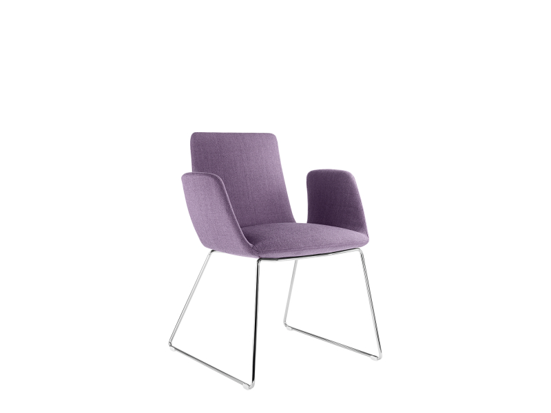 celočalouněný korpus, plastové kluzáky, nízký opěrák, konferenční křeslo, drátěná ocelová podnož v povrchové úpravě chrom, čalouněné područky