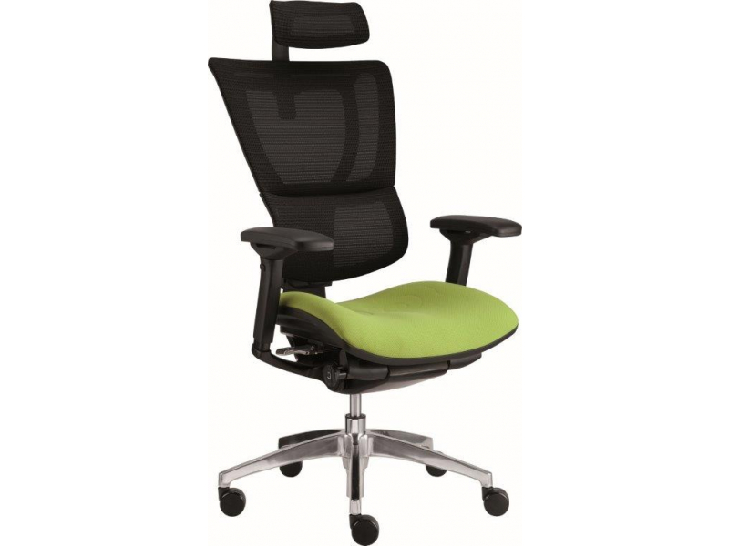 Moderní, velmi pohodlná kancelářská židle vyšší třídy s prodyšným výškově stavitelným opěrákem s pružnou bederní opěrkou. Opěrák je potažen černou prodyšnou sítí a disponuje stavitelným 3D podhlavníkem. Sedák je v této variantě čalouněný.