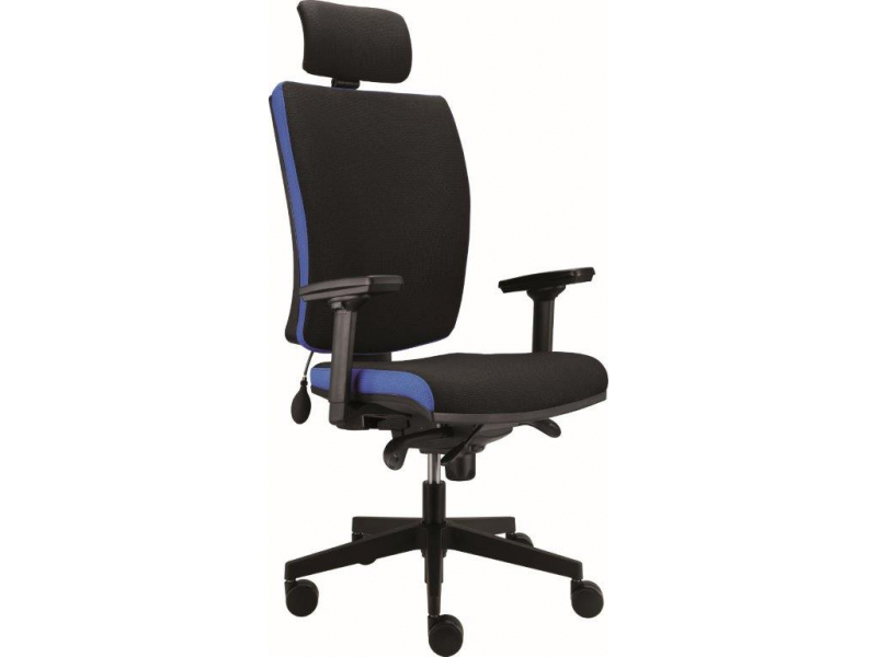 Moderní kancelářská židle se sedákem i opěrákem z injektované pěny, opěrák je výškově stavitelný. Základní varianta zahrnuje přošití hran sedáku a opěráku.
