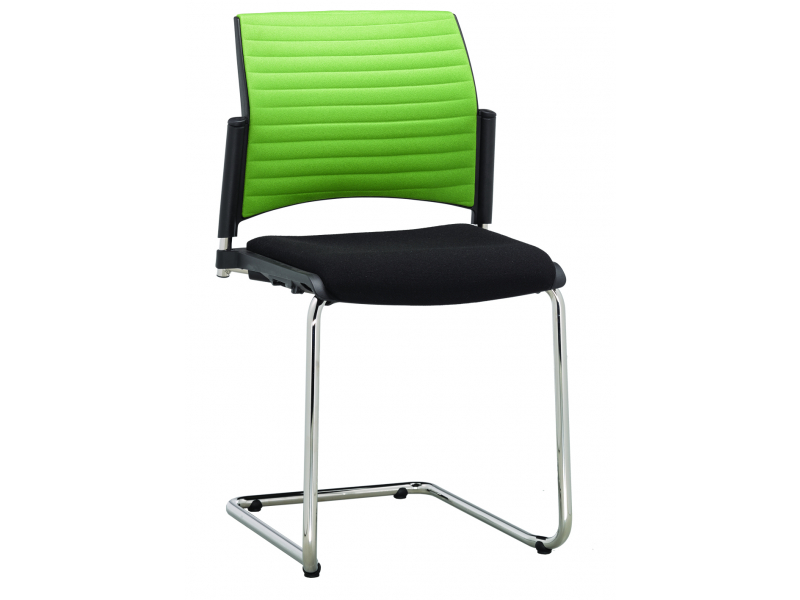 Stohovatelná konferenční židle na pérovém rámu s konstrukcí odděleného sedáku a zádové opěry.
