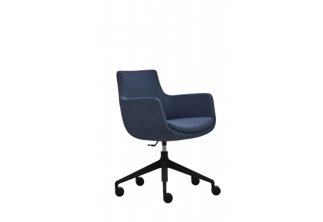 Celočalouněné výškově stavitelné otočné křeslo oblého tvaru s područkami na pětiramenné kónické podnoži s kolečky. Křeslo je vhodné do odpočinkových zón, čekacích prostor, vstupních hal, recepcí, ale i jako jednací sezení do kancelářských prostor a domácích pracoven. Konstrukce odděleného sedáku a korpusu umožňuje kombinaci dvou barev čalounění. Základní provedení: |