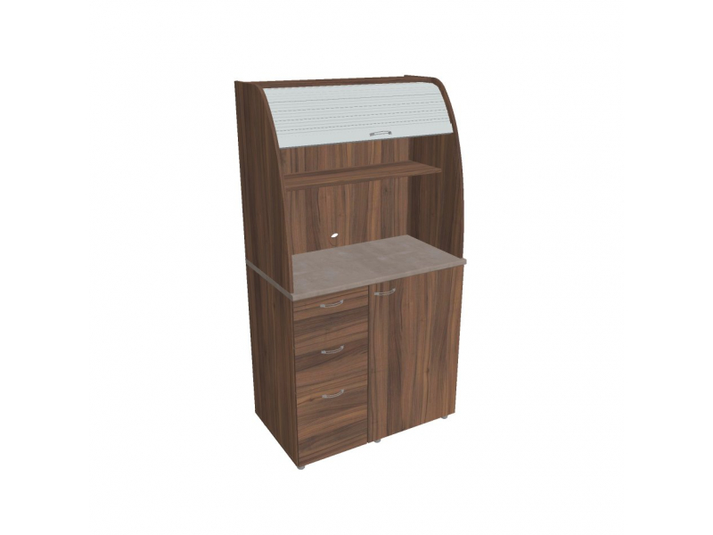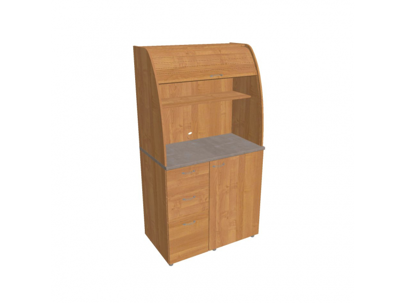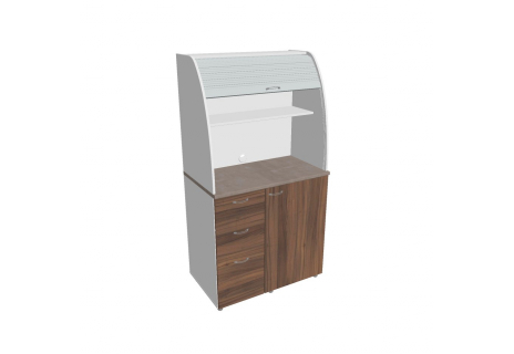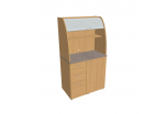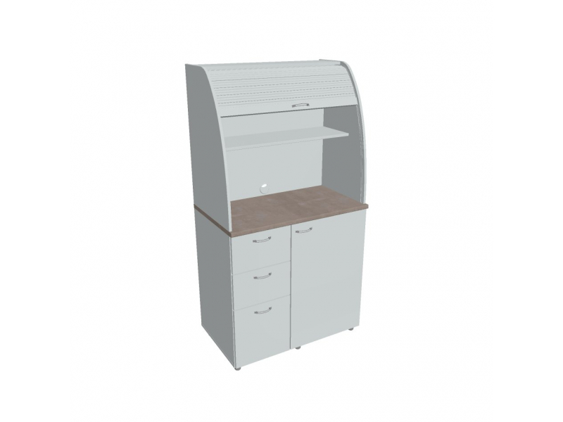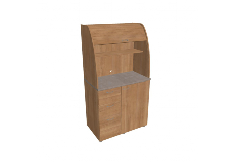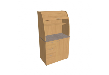 Dvě police ve vrchní části kuchyňky poskytují dostatečnou kapacitu pro vaše skleničky, hrnky či talíře. Na pracovní desku můžete umístit např. kávovar a kabelovou průchodkou v zadní části vyvedete přívodní kabel z prostoru kuchyňky.