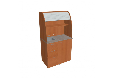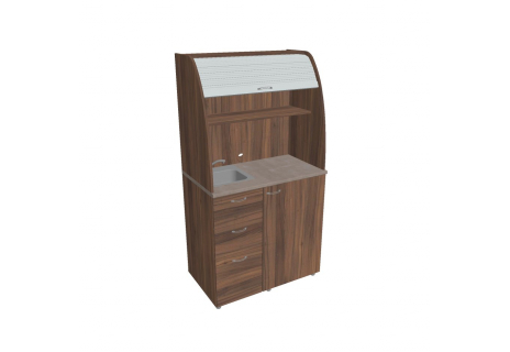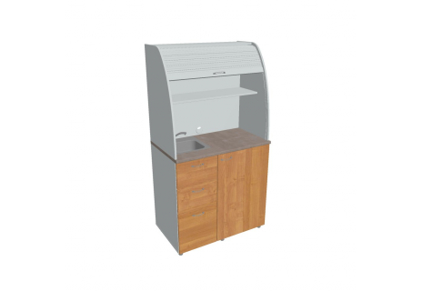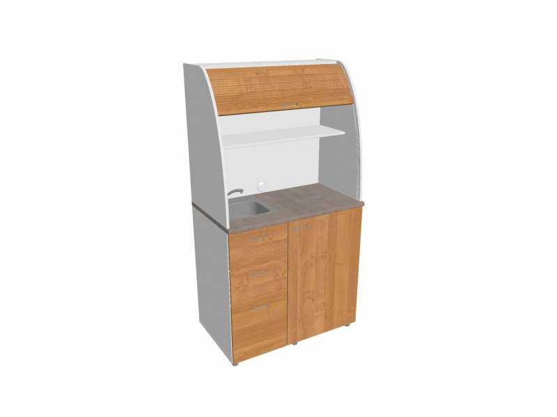 Dvě police ve vrchní části kuchyňky poskytují dostatečnou kapacitu pro vaše skleničky, hrnky či talíře. Na pracovní desku můžete umístit např. kávovar a kabelovou průchodkou v zadní části vyvedete přívodní kabel z prostoru kuchyňky.