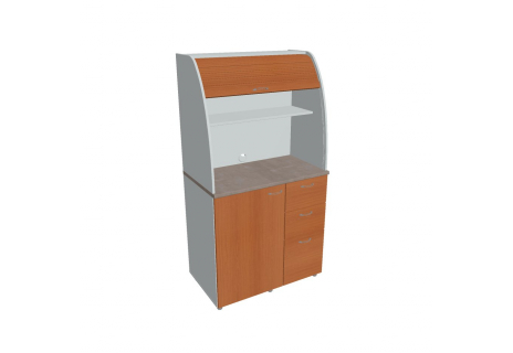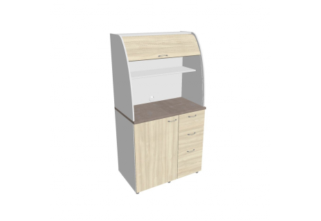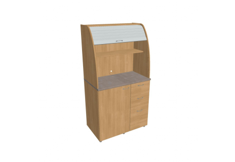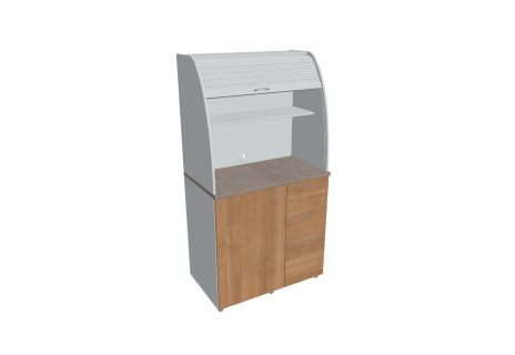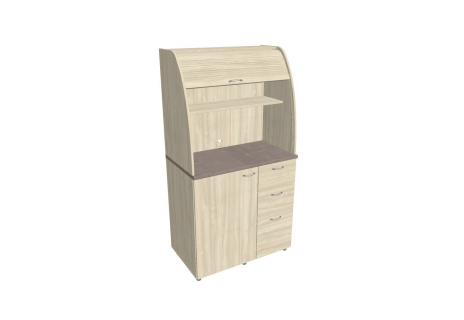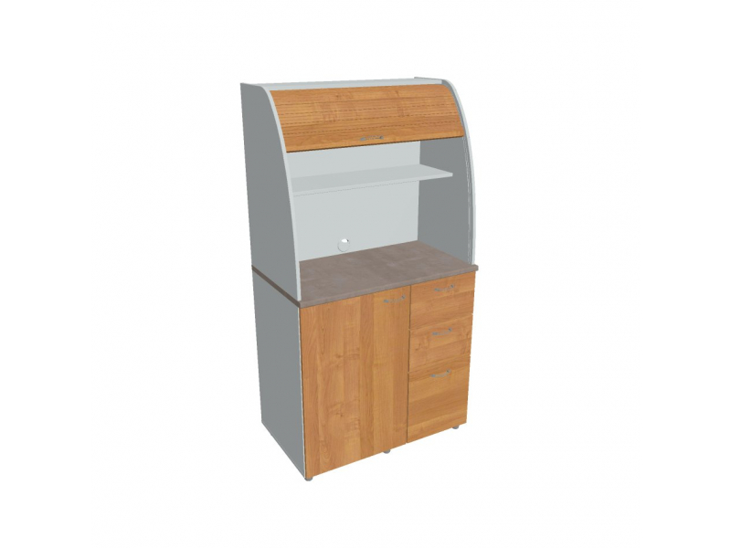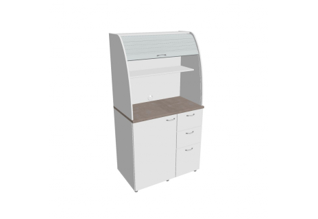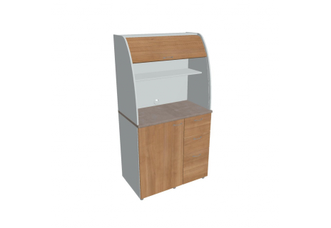 Dvě police ve vrchní části kuchyňky poskytují dostatečnou kapacitu pro vaše skleničky, hrnky či talíře. Na pracovní desku můžete umístit např. kávovar a kabelovou průchodkou v zadní části vyvedete přívodní kabel z prostoru kuchyňky.