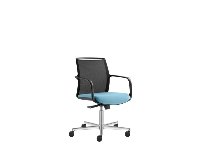 kolečka na koberce, černá, Ø 60 mm, výškově stavitelná, čalouněný sedák, síťovaný opěrák, 5-ramenný hliníkový kříž, leštěný, otočná konferenční židle, nylonové područky, černé, černý nylonový rám, houpací mechanika s nastavením tuhosti odporu pod sedákem a možností aretace ve výchozí pozici, opěrák čalouněný síťovinou NET, nebo RIB, za příplatek SWING, nebo RAY