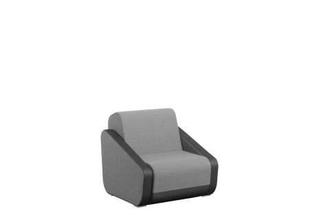 celočalouněný korpus, čalouněné područky, křeslo, podnož tvořená plochými kovovými kluzáky