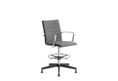 5-ramenný nylonový kříž, černý, výškově stavitelná, plastové kluzáky, vysoký píst s kruhem pro nohy, otočná konferenční židle, celočalouněný korpus, prošívaný, hliníkové područky, pochromované