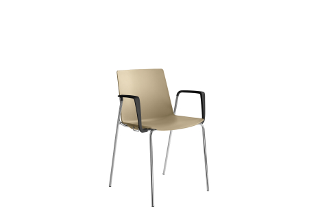 konferenční židle, stohovatelná, 4-nohá ocelová podnož v povrchové úpravě chrom, nylonové područky, černé, plastový korpus, plastové kluzáky na koberce se snadno vyměnitelným zakončením