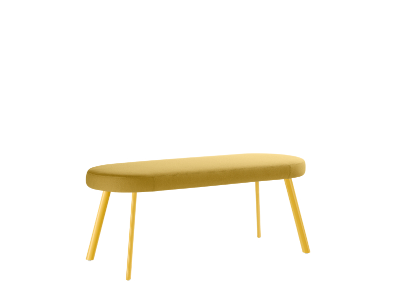 4-nohá ocelová podnož v povrchové úpravě červená (RAL 3000), modrá (RAL 5024), zelená (RAL 6021), nebo žlutá (RAL1002) prášková barva, dvojmístná lavice, plastové kluzáky na koberce se snadno vyměnitelným zakončením, čalouněný sedák