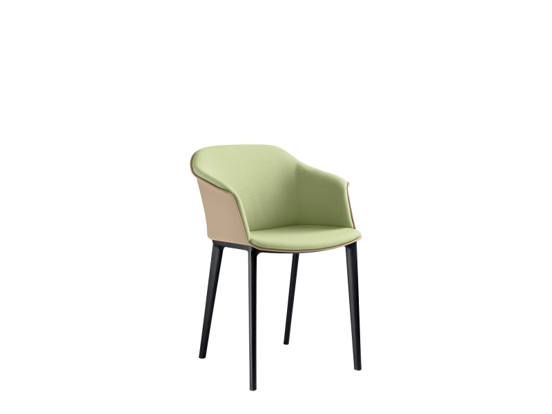 plastové kluzáky, konferenční křeslo, plastový korpus, 4-nohá nylonová podnož v černém provedení, čalouněný panel sedáku a opěráku