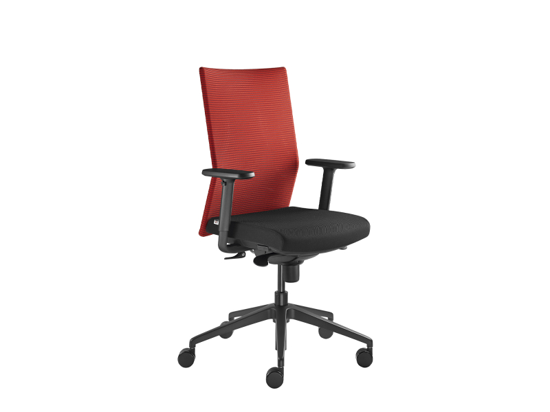 5-ramenný nylonový kříž, černý, kolečka na koberce, černá, Ø 60 mm, otočná pracovní židle, výškově stavitelná, základní verze bez područek, čalouněný sedák, síťovaný opěrák, posuv sedáku, opěrák čalouněný síťovinou RIB, za příplatek SWING, synchronní mechanika SY s nastavením tuhosti odporu pod sedákem, 5x aretace